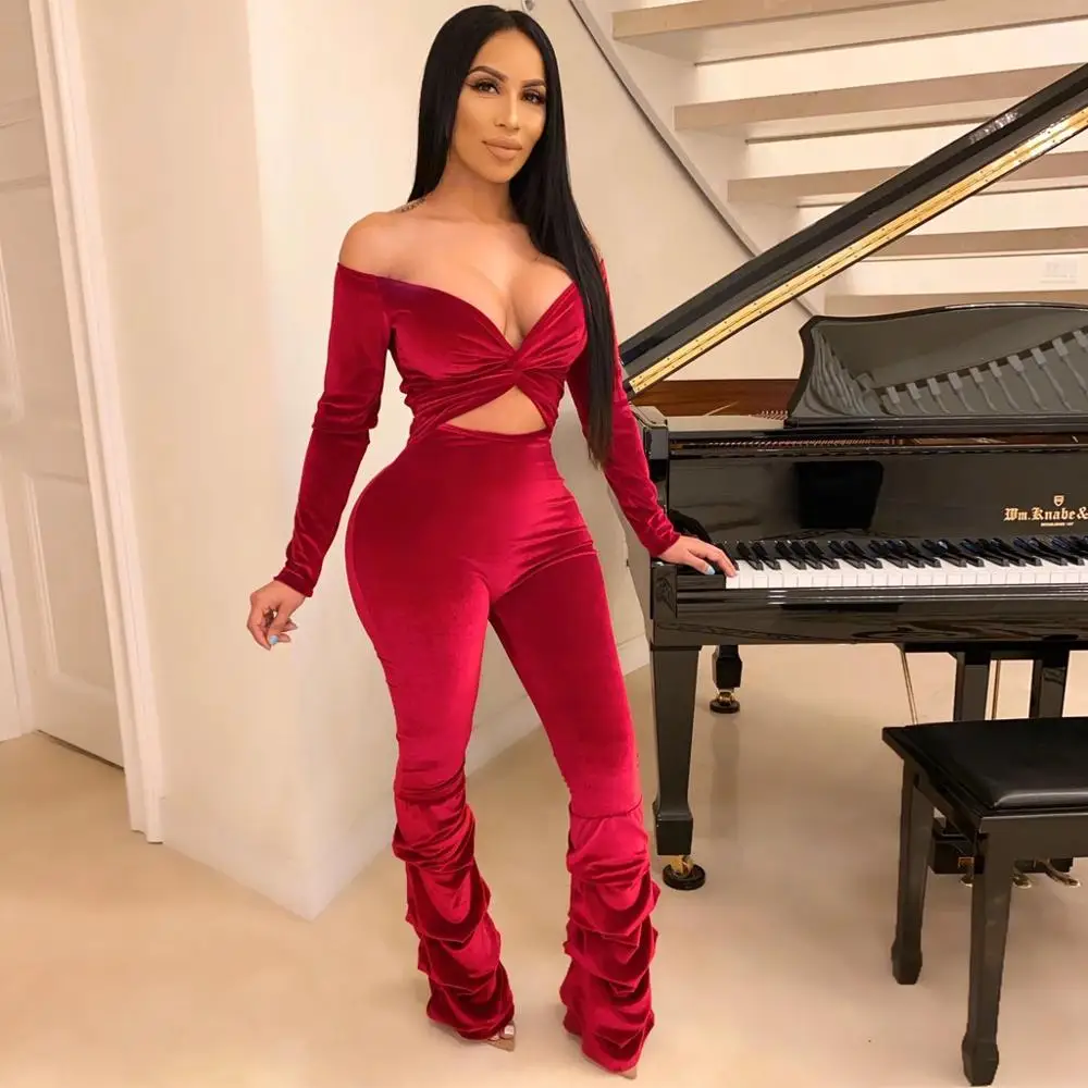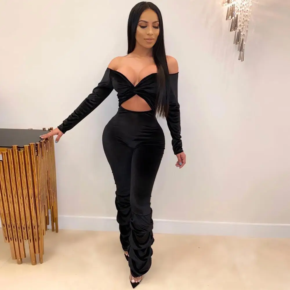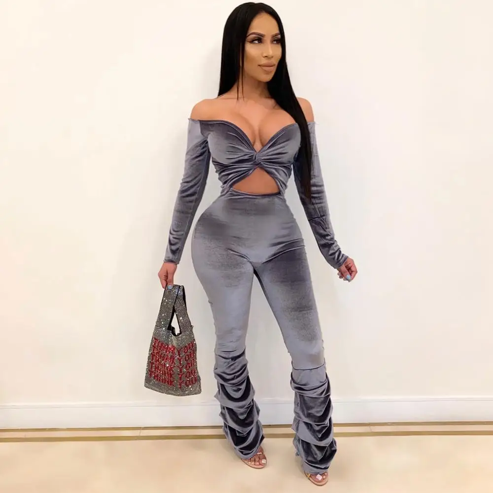 Get this Casual Pleated Womens Jumpsuit Fashion Solid Color Off Shoulder Hollow Out Creased Slim Winter Rompers Ropa Mujer 2020 New Hot E with limited time discount by pressing the button below
