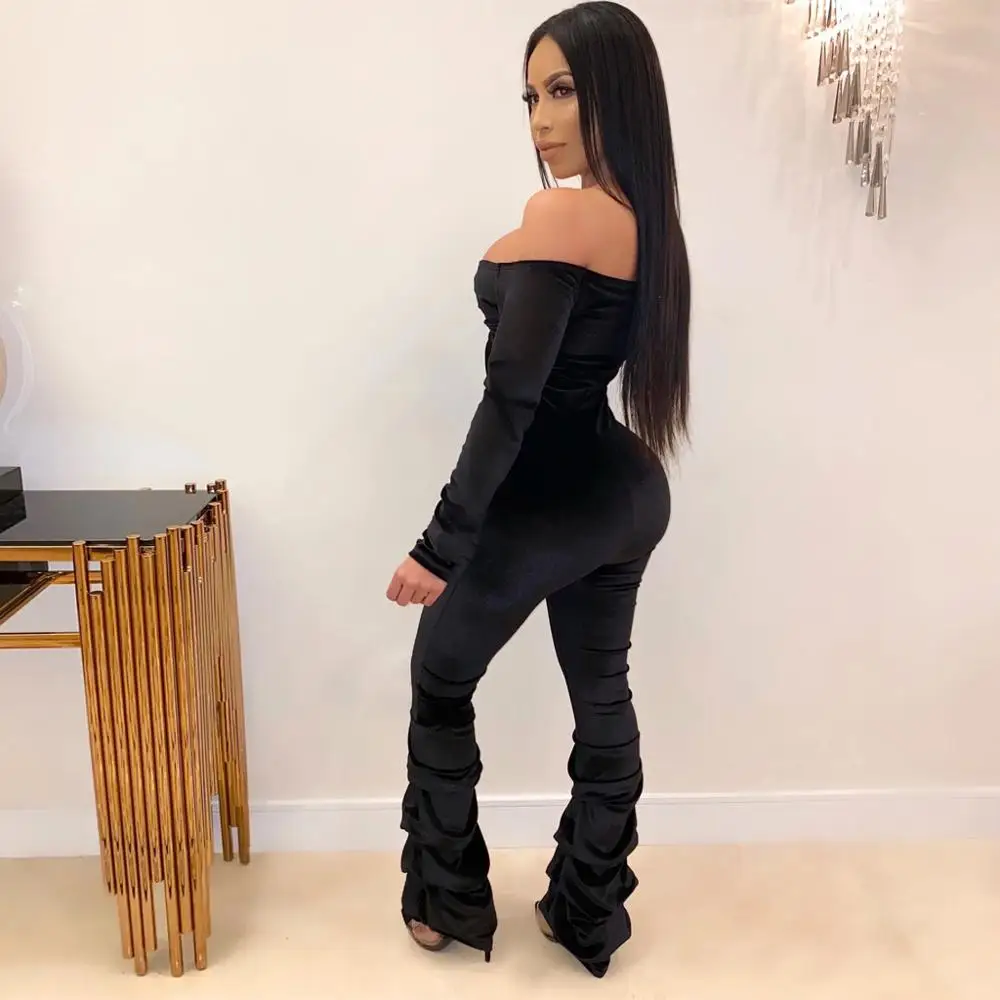 Images of Casual Pleated Womens Jumpsuit Fashion Solid Color Off Shoulder Hollow Out Creased Slim Winter Rompers Ropa Mujer 2020 New Hot E :
