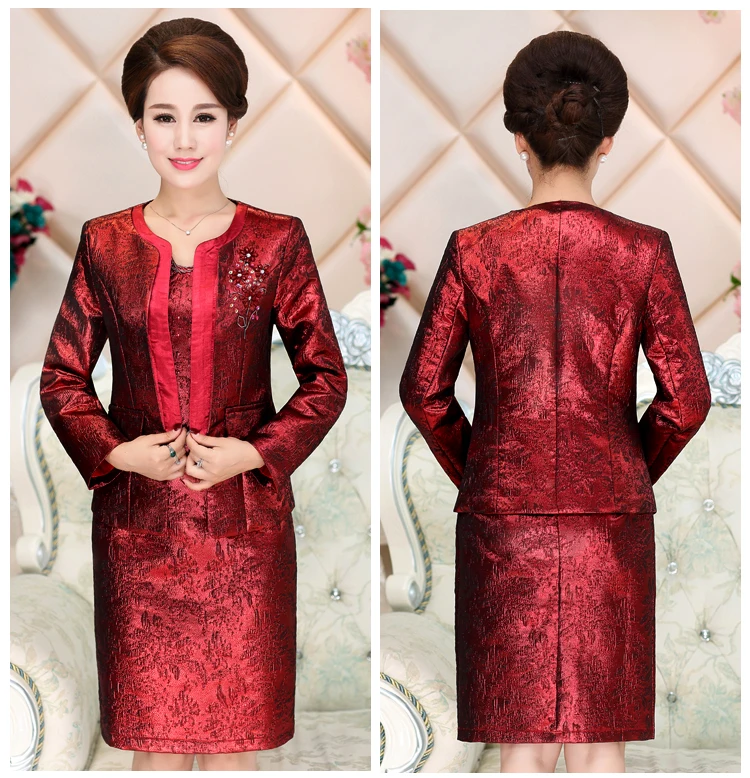 Images of 2 Pieces High Quality New Fashion Autumn Winter Wedding Dress Suit Mother Mid Old Aged Women Clothing Plus Size Slim :
